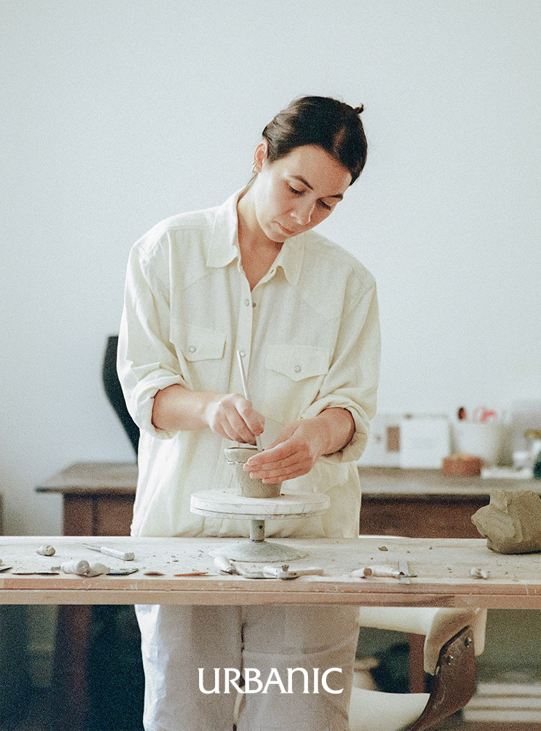 「時間、物質、そして手が導くデザイン」という彼女の哲学は、自身の名前からとった陶芸アトリエ、マティルド・マルタンを通して、素朴ながらも繊細に手が残した痕跡、均一ではない厚さ、光の当たり具合によって変化する艶と光沢を持つ陶器として形になる。様々なファッション、コスメ、ライフスタイルブランドとのコラボレーションを通して、シンプルとエレガントの間(はざま)にある精緻な調和を絶えず探求するマティルド・マルタンとのインタビュー。