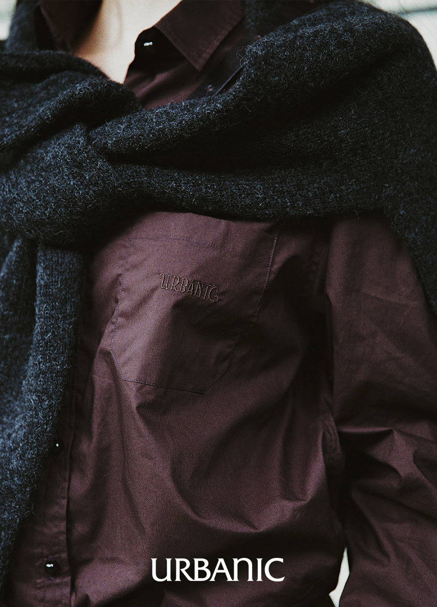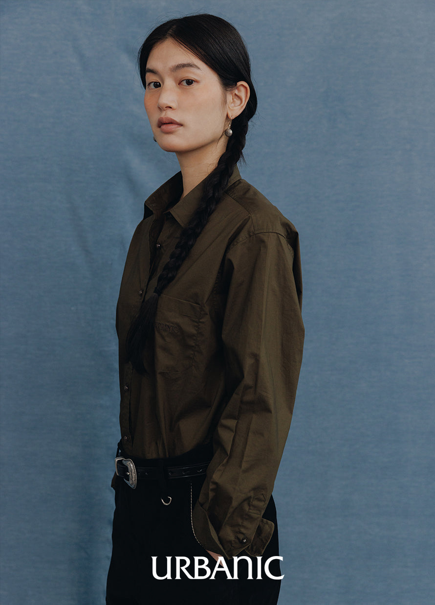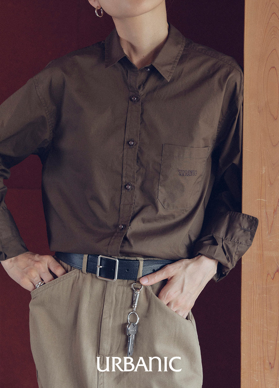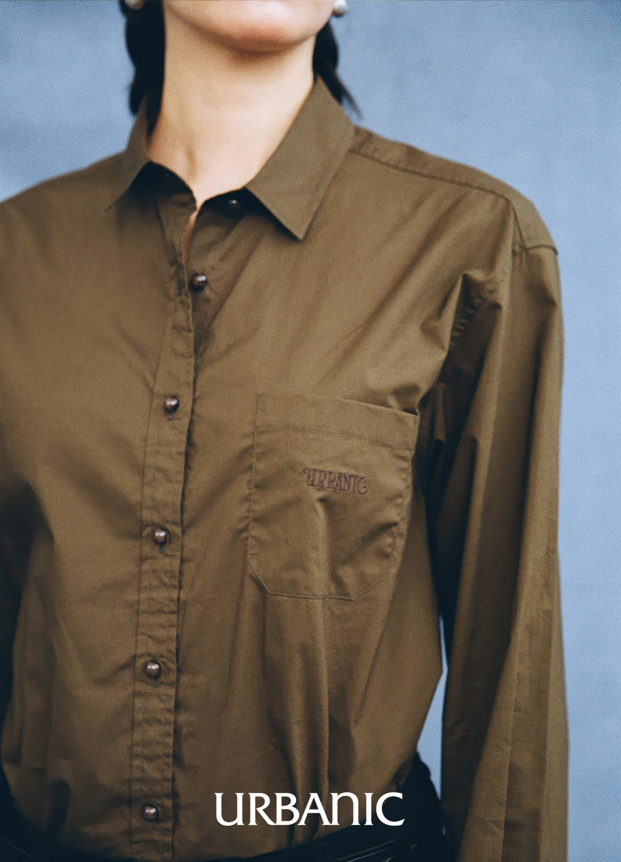 胸ポケットの上には、蔦のように優雅にあしらわれたURBANICのタイポ刺繍。半球状のボタンはシャツの色と調和しており、細部にまで特別感を宿しました。