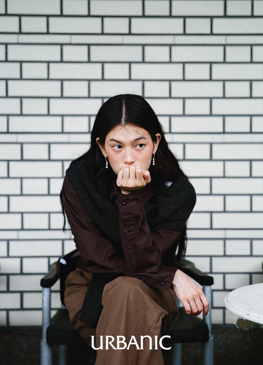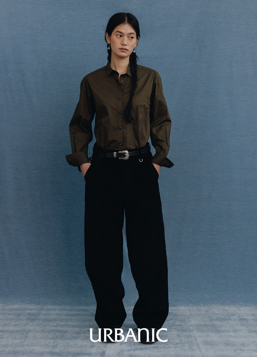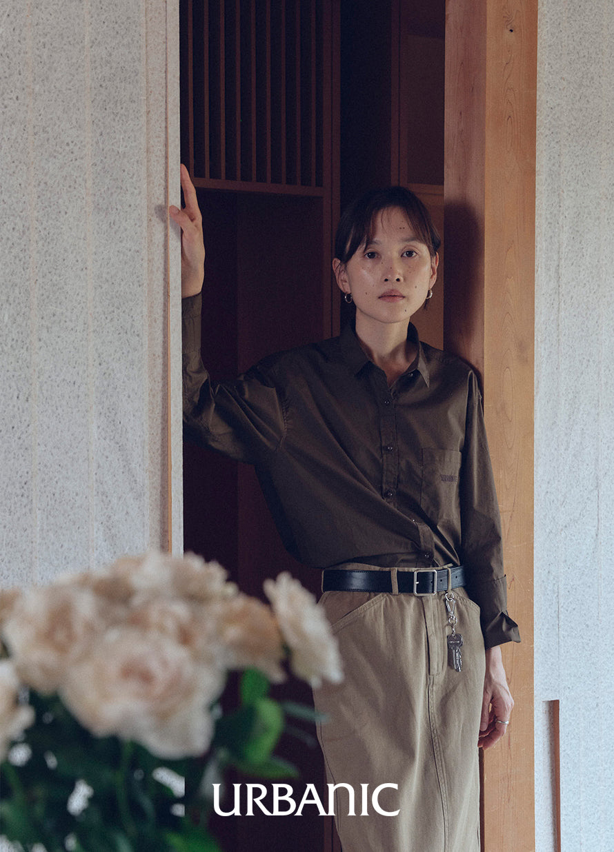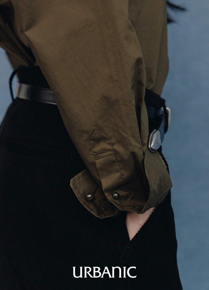 胸ポケットの上には、蔦のように優雅にあしらわれたURBANICのタイポ刺繍。半球状のボタンはシャツの色と調和しており、細部にまで特別感を宿しました。