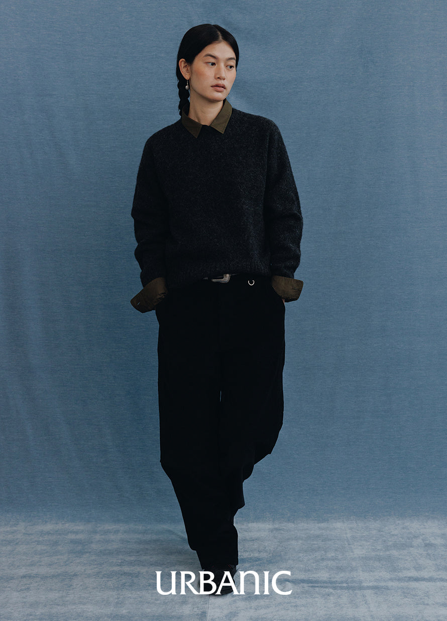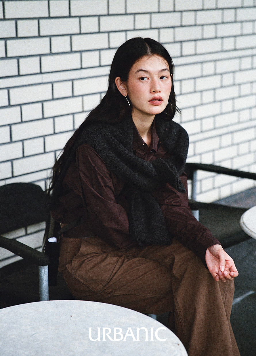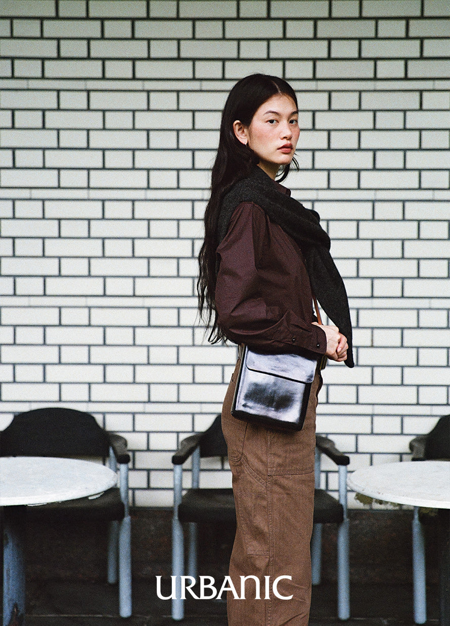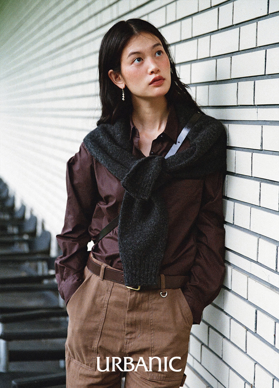 胸ポケットの上には、蔦のように優雅にあしらわれたURBANICのタイポ刺繍。半球状のボタンはシャツの色と調和しており、細部にまで特別感を宿しました。