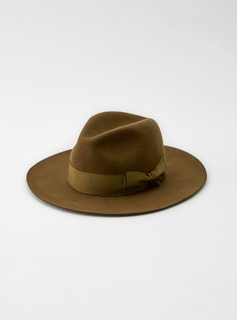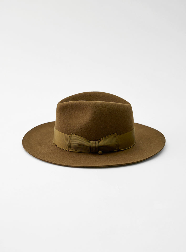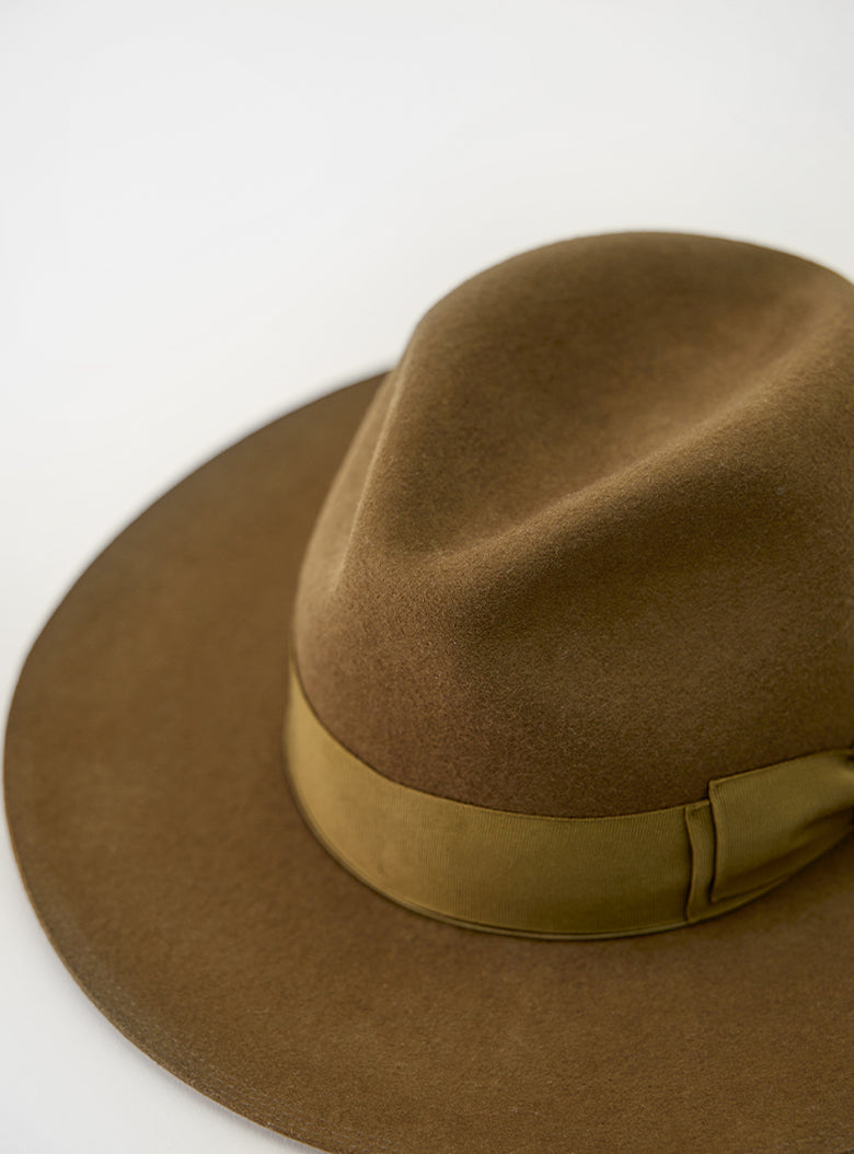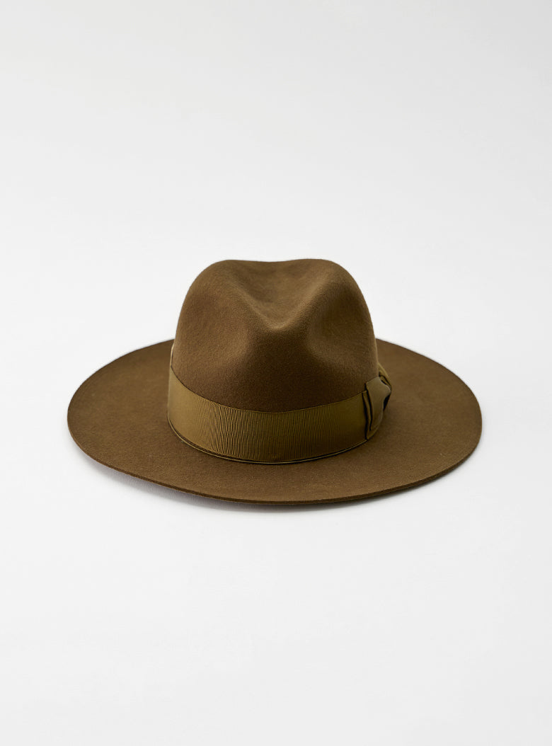 ソフトハット特有の美しいシルエットを保つため、クラウン部分ではなくブリム部分を持って着用することをおすすめします。