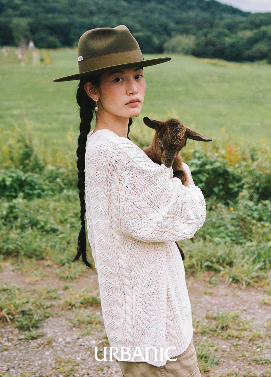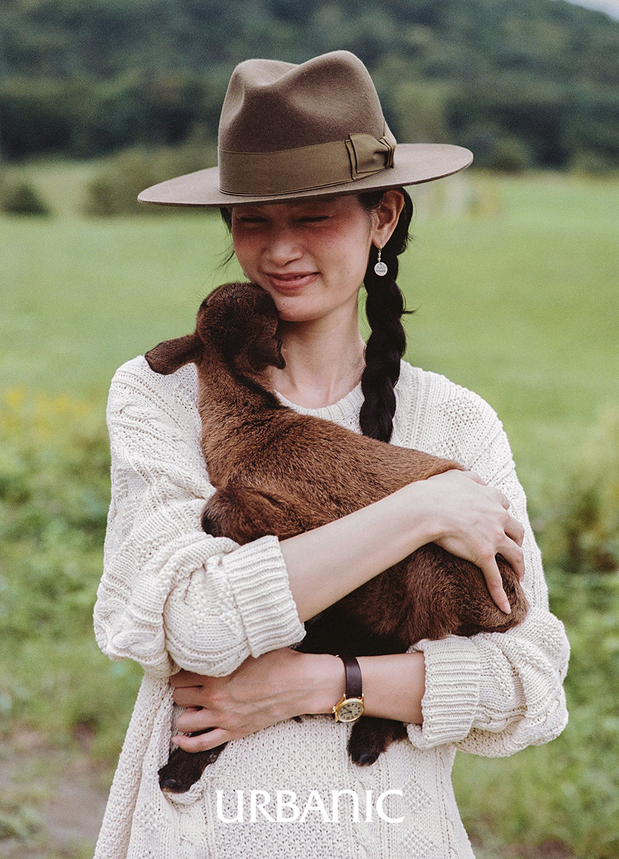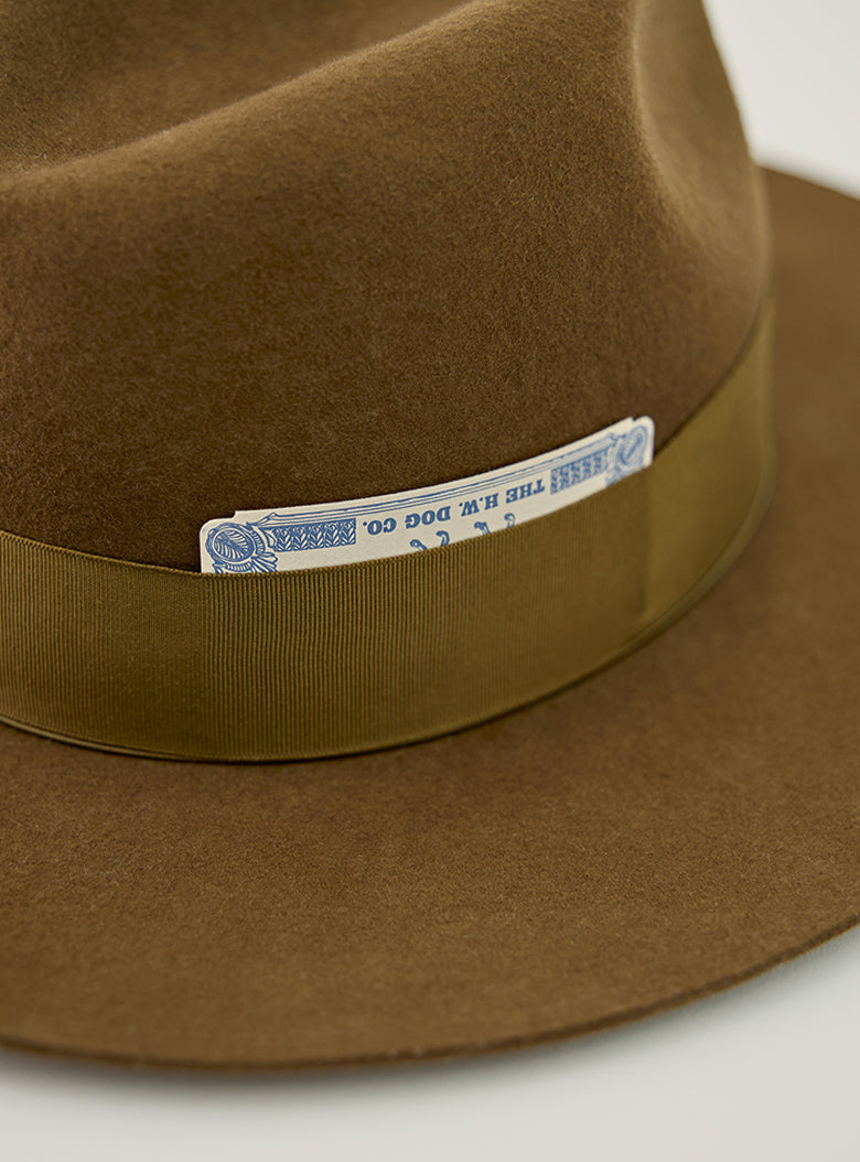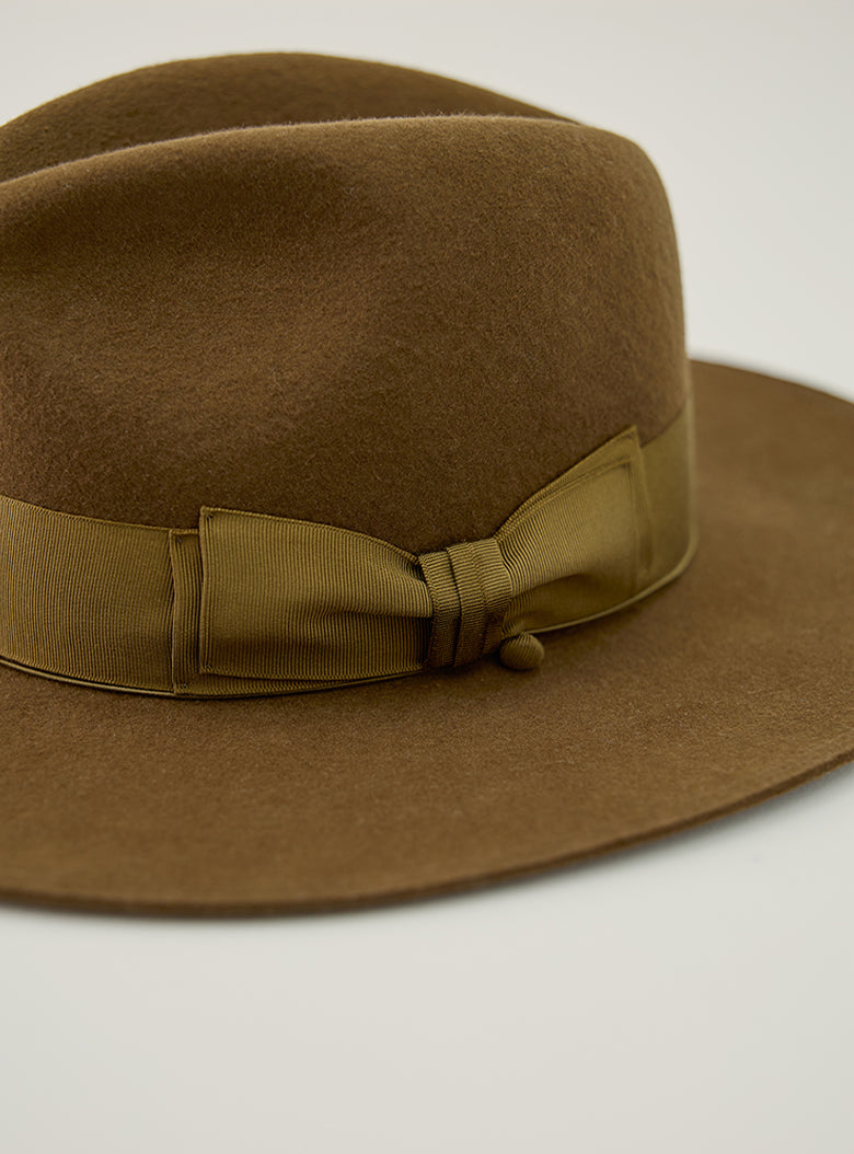 ソフトハット特有の美しいシルエットを保つため、クラウン部分ではなくブリム部分を持って着用することをおすすめします。