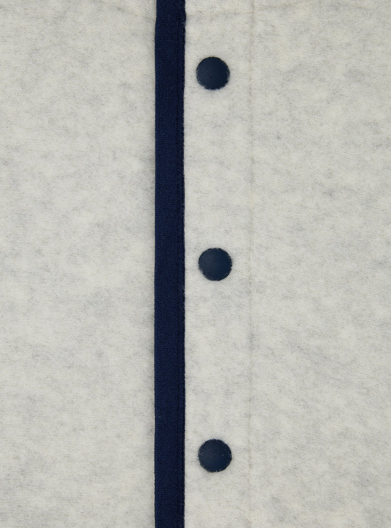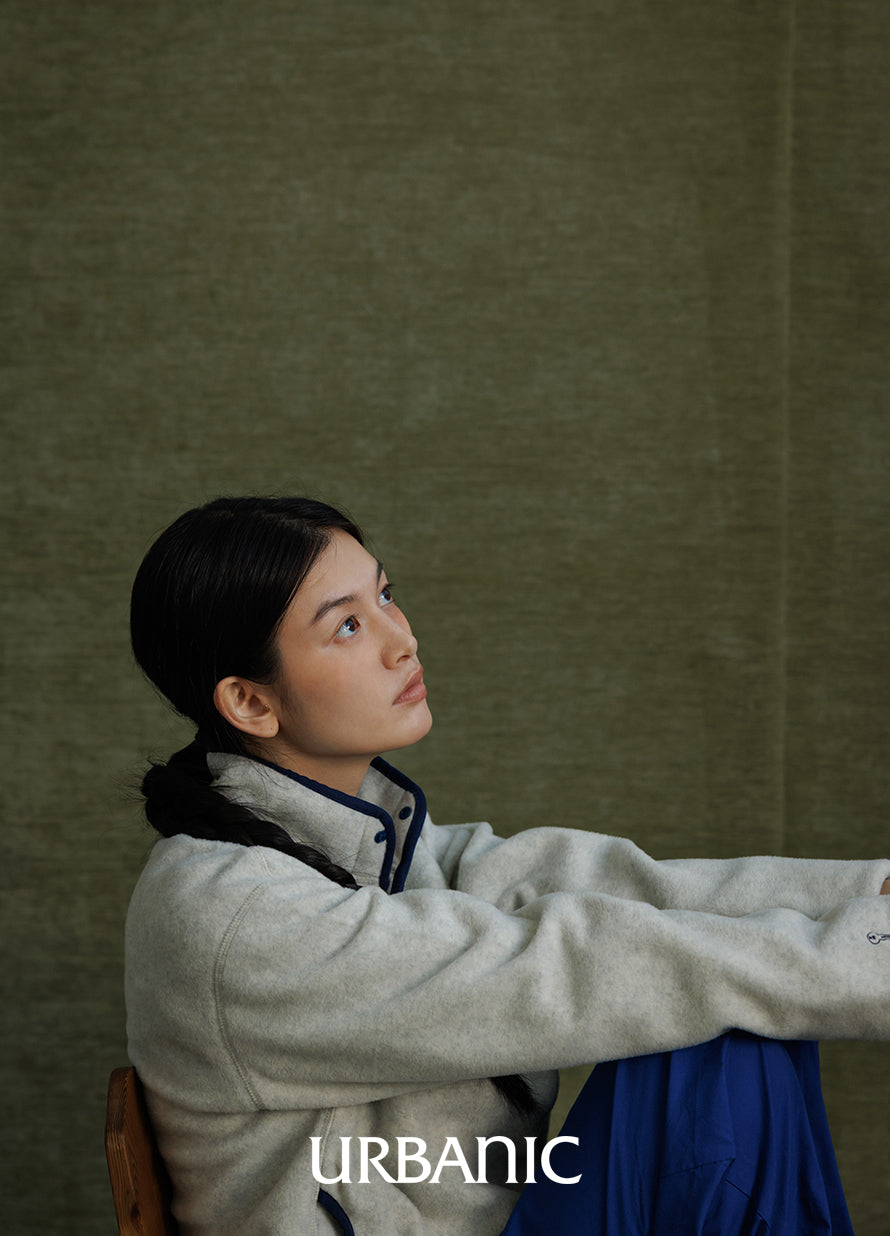 やわらかなポリエステル100%素材を使用し、さまざまな体型に馴染みやすいバランスでデザイン。アウターとしてはもちろん、コートの内側に重ね着しやすい程よい厚みのフリースアイテムです。